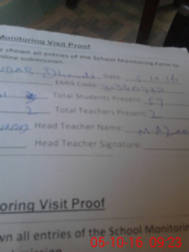 | Attendance Register | Head Teacher | MEA with School | Visit Proof |