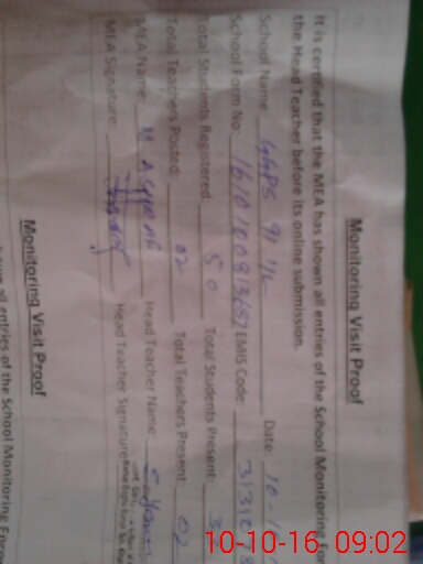 | Certified that this School was Inspected by the Undersigned MEA/DMO Today and the Information Stated Above is as Per Record. | |||||