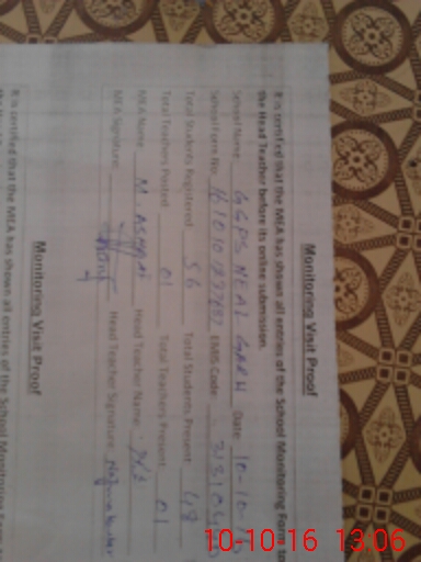 | Certified that this School was Inspected by the Undersigned MEA/DMO Today and the Information Stated Above is as Per Record. | |||||