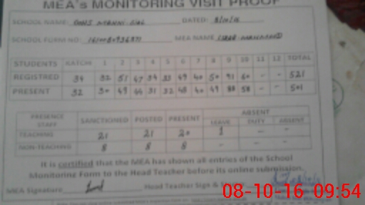 | Certified that this School was Inspected by the Undersigned MEA/DMO Today and the Information Stated Above is as Per Record. | |||||