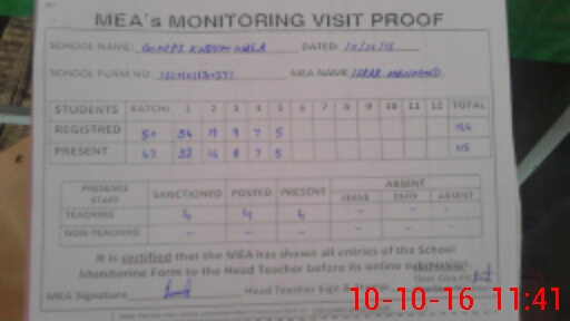 | Certified that this School was Inspected by the Undersigned MEA/DMO Today and the Information Stated Above is as Per Record. | |||||