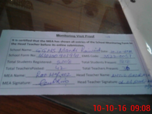 | Attendance Register | Head Teacher | MEA with School | Visit Proof |