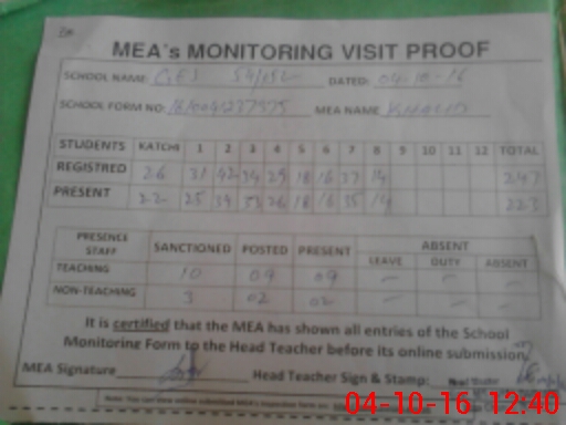 | Attendance Register | Head Teacher | MEA with School | Visit Proof |