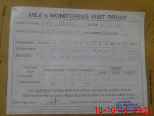 | Certified that this School was Inspected by the Undersigned MEA/DMO Today and the Information Stated Above is as Per Record. | |||||