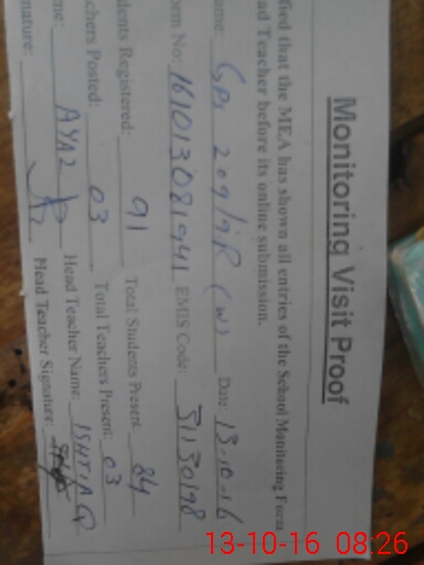 | EMIS Code: 31130198 | Name of School: GPS CHAK 209/9-R WEST | |||