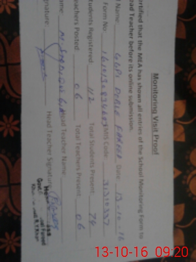 | EMIS Code: 31310337 | Name of School: GGPS DOBLE FAREED | |||