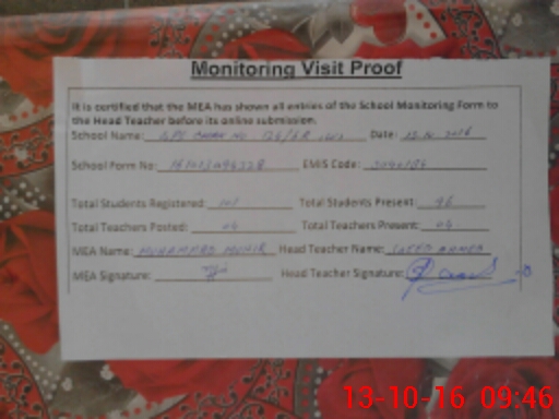 | Certified that this School was Inspected by the Undersigned MEA/DMO Today and the Information Stated Above is as Per Record. | |||||
