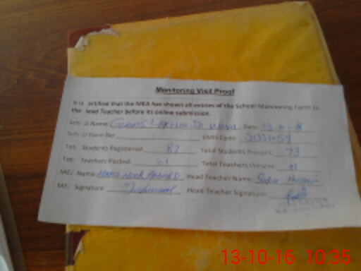 | Attendance Register | Head Teacher | MEA with School | Visit Proof |