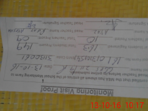 | Certified that this School was Inspected by the Undersigned MEA/DMO Today and the Information Stated Above is as Per Record. | |||||