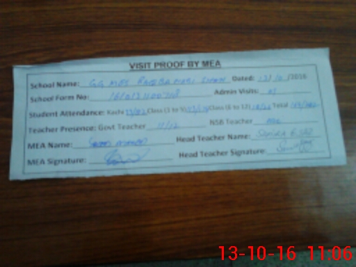 | Attendance Register | Head Teacher | MEA with School | Visit Proof |