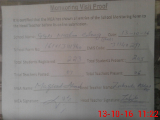 | Certified that this School was Inspected by the Undersigned MEA/DMO Today and the Information Stated Above is as Per Record. | |||||