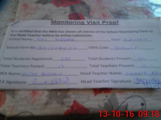 | Attendance Register | Head Teacher | MEA with School | Visit Proof |