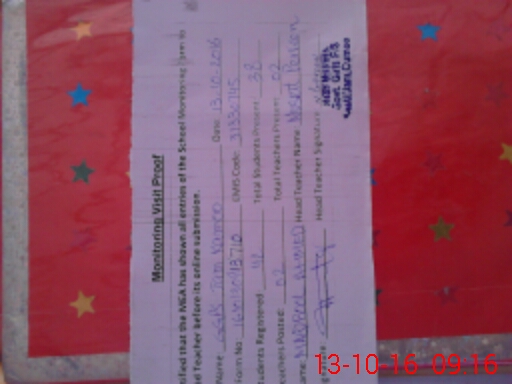 | Attendance Register | Head Teacher | MEA with School | Visit Proof |