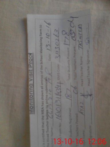 | Attendance Register | Head Teacher | MEA with School | Visit Proof |