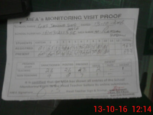 | Attendance Register | Head Teacher | MEA with School | Visit Proof |