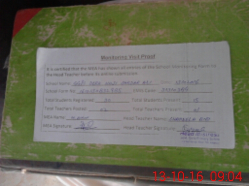 | Attendance Register | Head Teacher | MEA with School | Visit Proof |