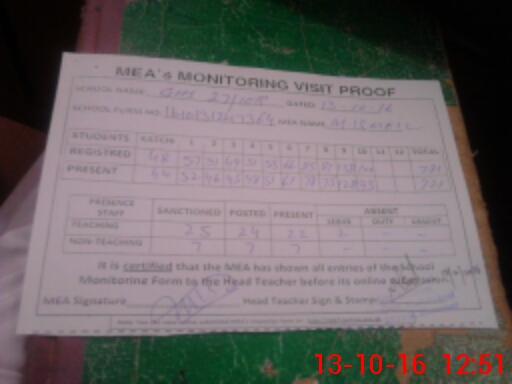 | Attendance Register | Head Teacher | MEA with School | Visit Proof |