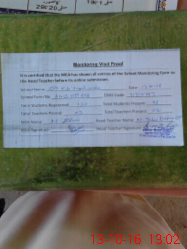 | Attendance Register | Head Teacher | MEA with School | Visit Proof |