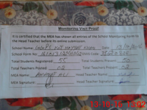 | EMIS Code: 35620828 | Name of School: GGPS KOT HAYAT KHAN | |||