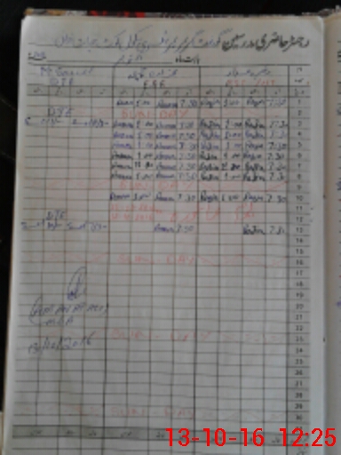 | CNIC | Full Name | Designation | R/C | Absence During Last Calender Month |