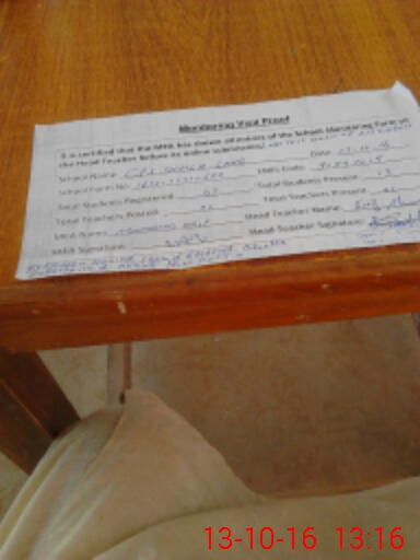 | Attendance Register | Head Teacher | MEA with School | Visit Proof |