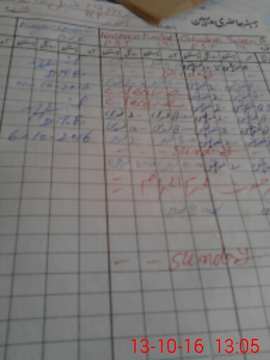 | Monitoring Date: 13-10-2016 | Start Time: 13-10-2016 12:49 PM | End Time: 13-10-2016 01:09 PM | Name of MEA: Za**** Hu**** | |