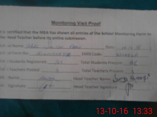 | Certified that this School was Inspected by the Undersigned MEA/DMO Today and the Information Stated Above is as Per Record. | |||||