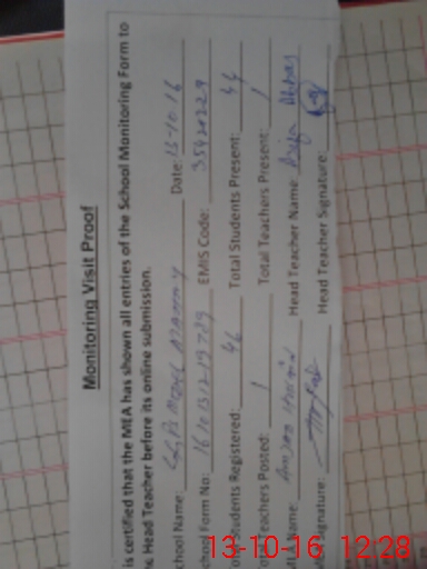 | Certified that this School was Inspected by the Undersigned MEA/DMO Today and the Information Stated Above is as Per Record. | |||||
