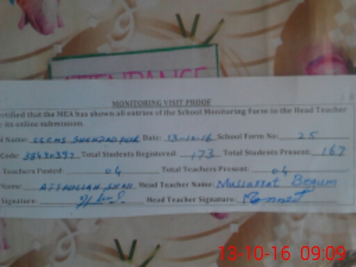 | Certified that this School was Inspected by the Undersigned MEA/DMO Today and the Information Stated Above is as Per Record. | |||||