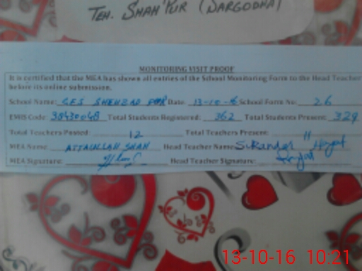 | EMIS Code: 38430048 | Name of School: GES SHAHZAD PUR | |||