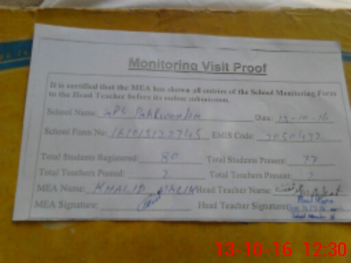 | EMIS Code: 31150432 | Name of School: GPS PAHLWANKA | |||