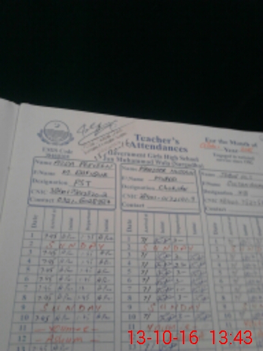 | Name: UF**** FE**** Designation: (School Headmaster's/Headmistress's) HEADMISTRESS Phone/Cell Number: 03**** |