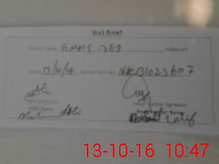 | School Visited by School Health & Nutrition Supervisor (No. of Visits) | 1 | Name1: | Saleem | Name2: | |