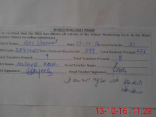 | Attendance Register | Head Teacher | MEA with School | Visit Proof |
