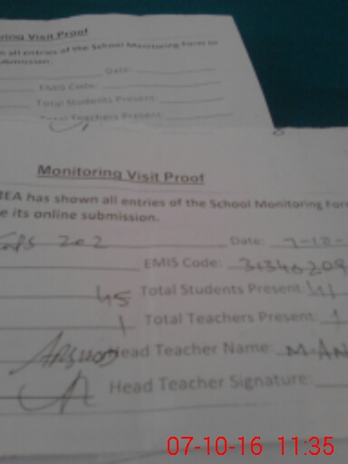 | Attendance Register | Head Teacher | MEA with School | Visit Proof |