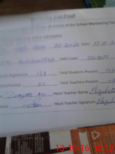 | Attendance Register | Head Teacher | MEA with School | Visit Proof |