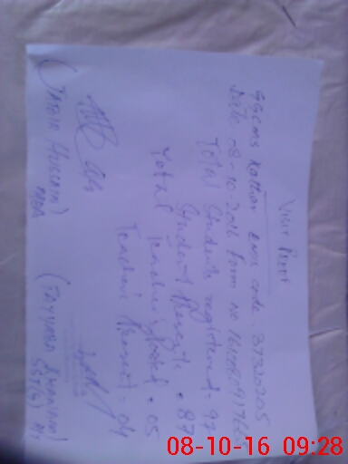| Monitoring Date: 08-10-2016 | Start Time: 08-10-2016 08:29 AM | End Time: 08-10-2016 09:30 AM | Name of MEA: Rt**** Ja**** Hu**** | |