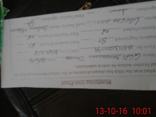 | Certified that this School was Inspected by the Undersigned MEA/DMO Today and the Information Stated Above is as Per Record. | |||||