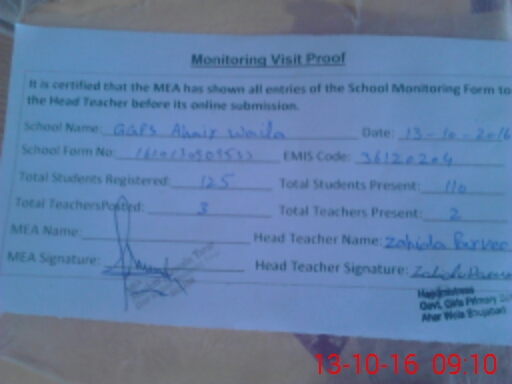 | Attendance Register | Head Teacher | MEA with School | Visit Proof |