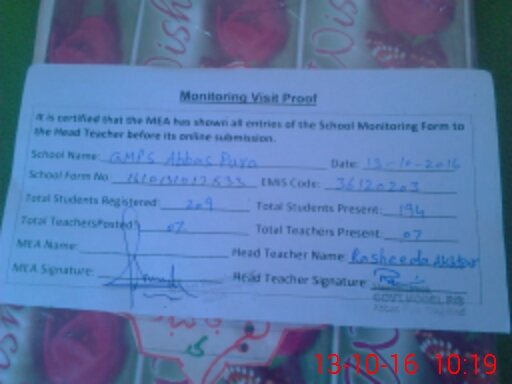 | EMIS Code: 36120203 | Name of School: GMPS ABBAS PURA | |||
