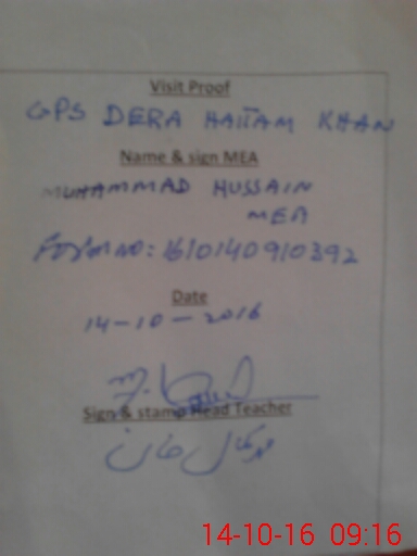 | EMIS Code: 38210385 | Name of School: GPS DERA HAITAM KHAN | |||