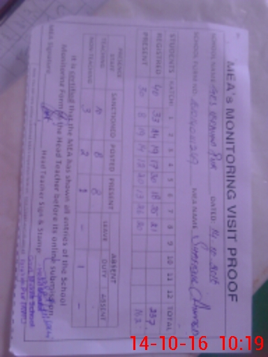 | Certified that this School was Inspected by the Undersigned MEA/DMO Today and the Information Stated Above is as Per Record. | |||||
