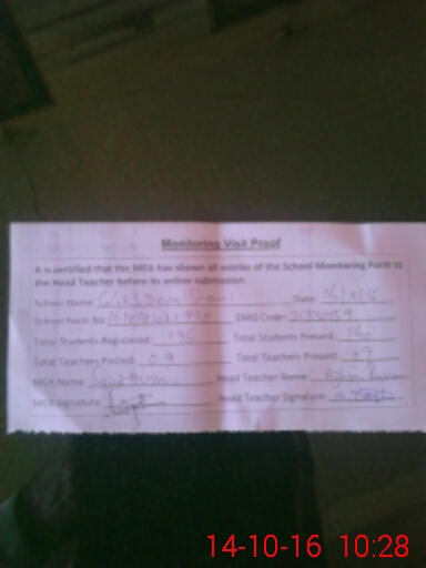 | Certified that this School was Inspected by the Undersigned MEA/DMO Today and the Information Stated Above is as Per Record. | |||||