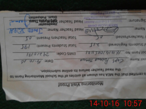| Certified that this School was Inspected by the Undersigned MEA/DMO Today and the Information Stated Above is as Per Record. | |||||