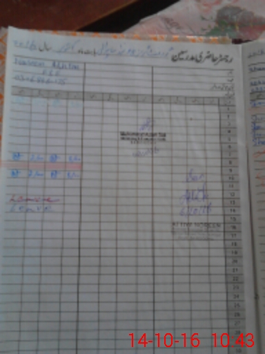 | CNIC | Full Name | Designation | R/C | Absence During Last Calender Month |