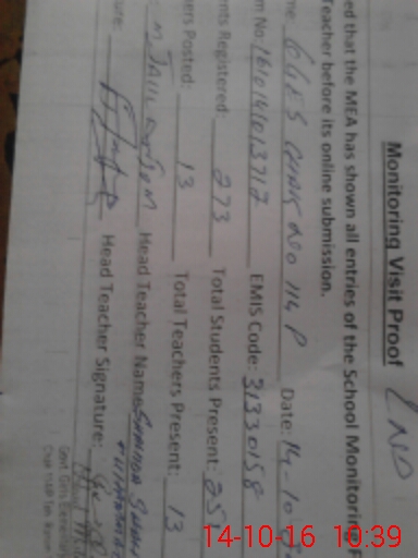 | Certified that this School was Inspected by the Undersigned MEA/DMO Today and the Information Stated Above is as Per Record. | |||||