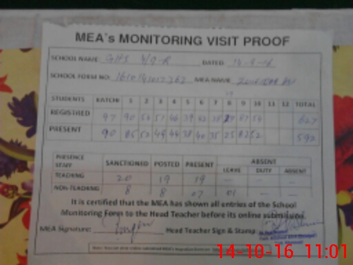 | Certified that this School was Inspected by the Undersigned MEA/DMO Today and the Information Stated Above is as Per Record. | |||||