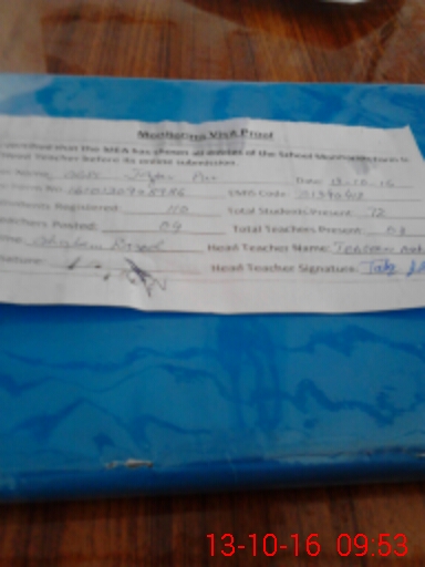 | Attendance Register | Head Teacher | MEA with School | Visit Proof |