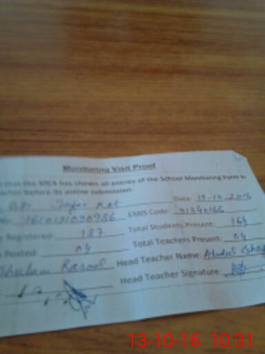 | EMIS Code: 31340166 | Name of School: GPS JAFAR KOT | |||
