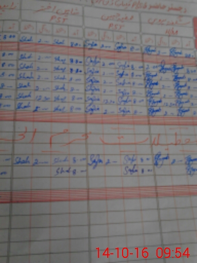 | CNIC | Full Name | Designation | R/C | Absence During Last Calender Month |